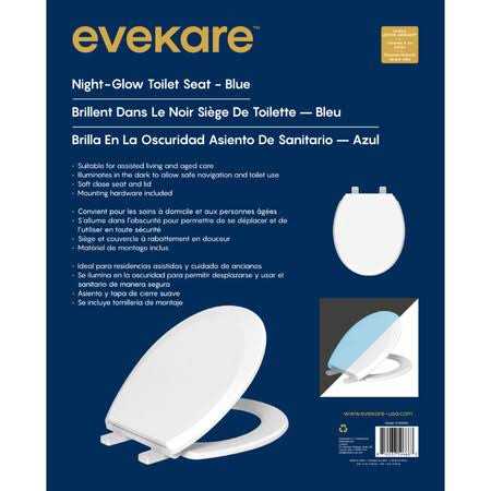 EVEKARE offer an extensive range of quality toilet aids that assist users in using the toilet and performing daily personal hygiene tasks, safely, independently and hygienically. The night-glow toilet seat has a glow in the dark feature which charges during the day using both natural and artificial lighting. The seat emits blue light in dim lighting to increase safety and assist with navigation. The soft close seat can be easily attached and is designed to suit most standard bowl sizes. Suitable for assisted living and aged care. Illuminates in the dark to allow safe navigation and toilet use. Soft close seat and lid. Mounting hardware included.