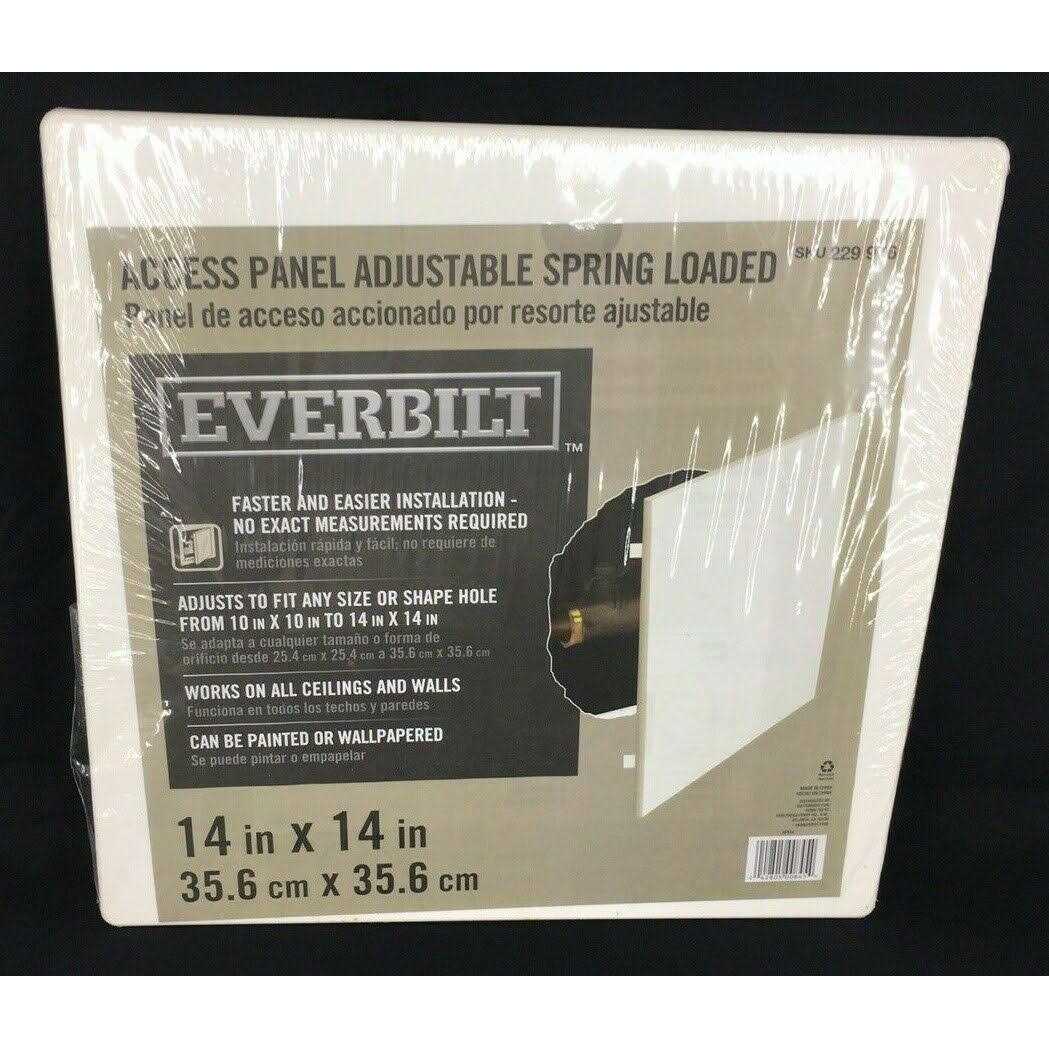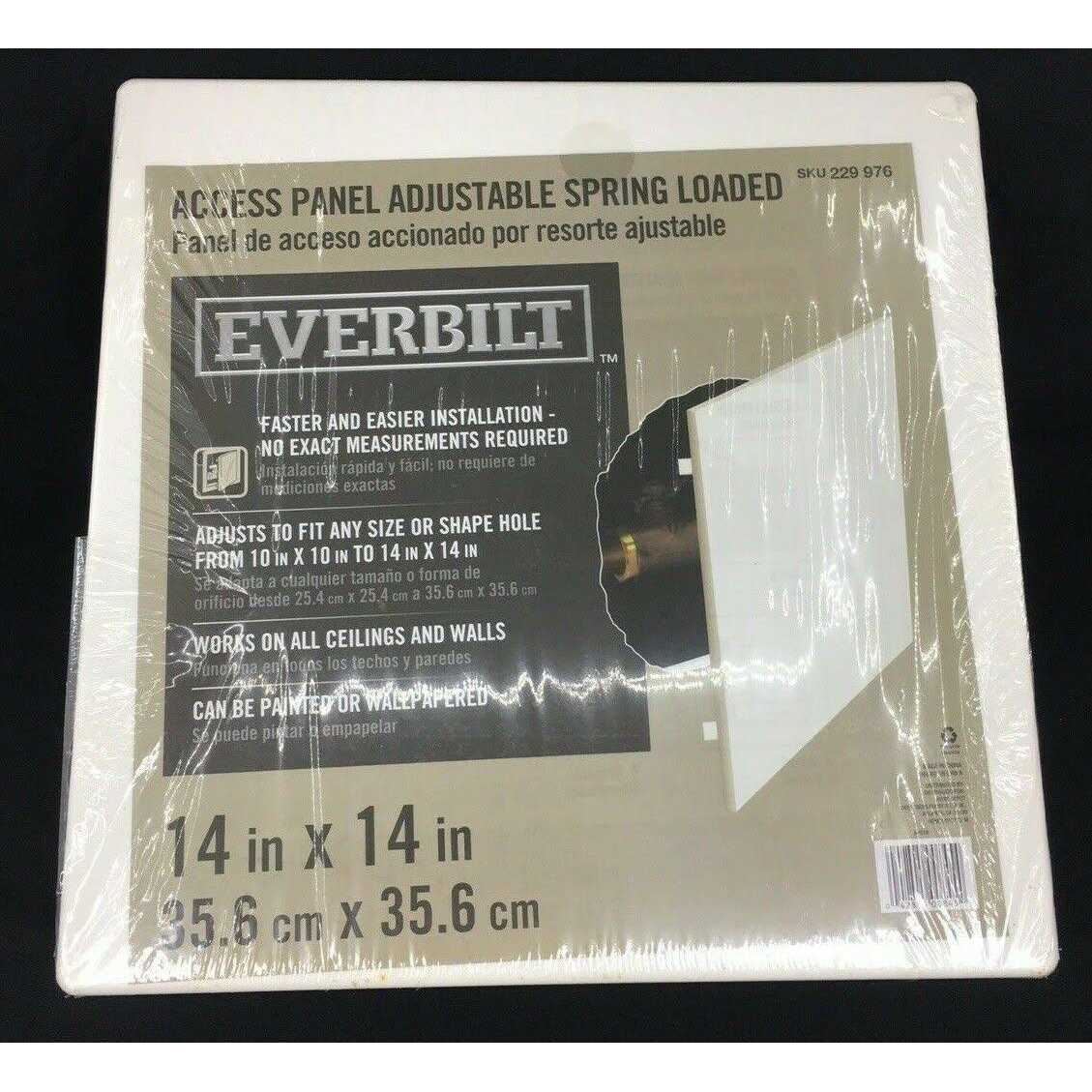 Keep unsightly connectors hidden with this spring fit access panel. Safely stow plumbing, spa pumps, wires and cables for residential and commercial applications. Constructed with durable white polystyrene, you can paint or wallpaper this panel to match the surrounding decor. Easy to paint or wallpaper to match your decor Can be installed by a DIYer or contractor Designed to hide wires, plumbing cables and spa pumps Fits any size or shape hole from 10 in. x 10 in. to 14 in. x 14 in. No exact measurements required Works on ceilings and walls Can be painted or wallpapered Hides plumbing, spa pumps, wires and cables Easy to install Conceal plumbing, wires, cables or spa pumps in residential and commercial applications by using Everbilt Spring Loaded Plastic Access Panel.
