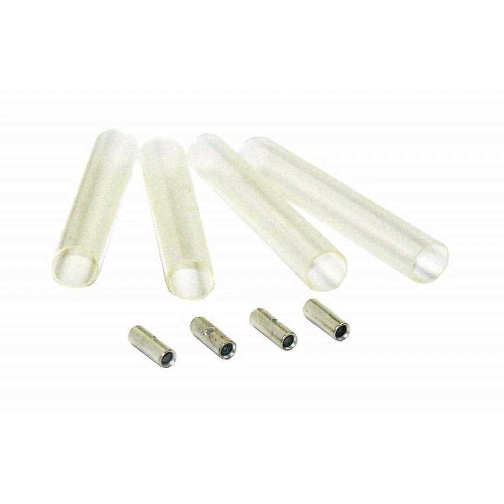 Each Wire Heat Shrink Kit comes with 4 transparent heat shrink tubes and 4 butt connectors. A heat shrink tube is a water-proof terminal that connects or terminates a single wire. The tubes are made to shrink around the electrical wire. The heat shrink butt connector is a terminal that is used to connect or terminate a single wire Heat shrink kit includes 4 heat shrink butt connectors Works with 14, 12 and 10-Gauge submersible wire Water-proof electrical connection California residents see Prop 65 WARNINGS Age Group: adult.