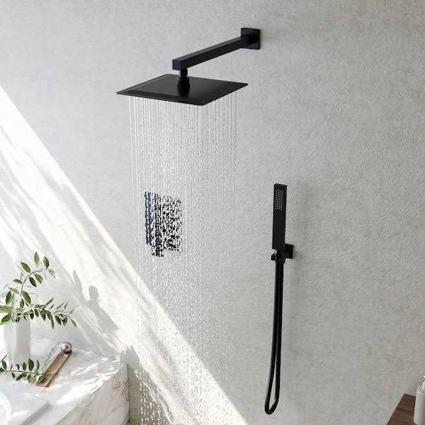 2-Spray Square 10 in. Shower System Shower Head with Handheld in Black (Valve Included)