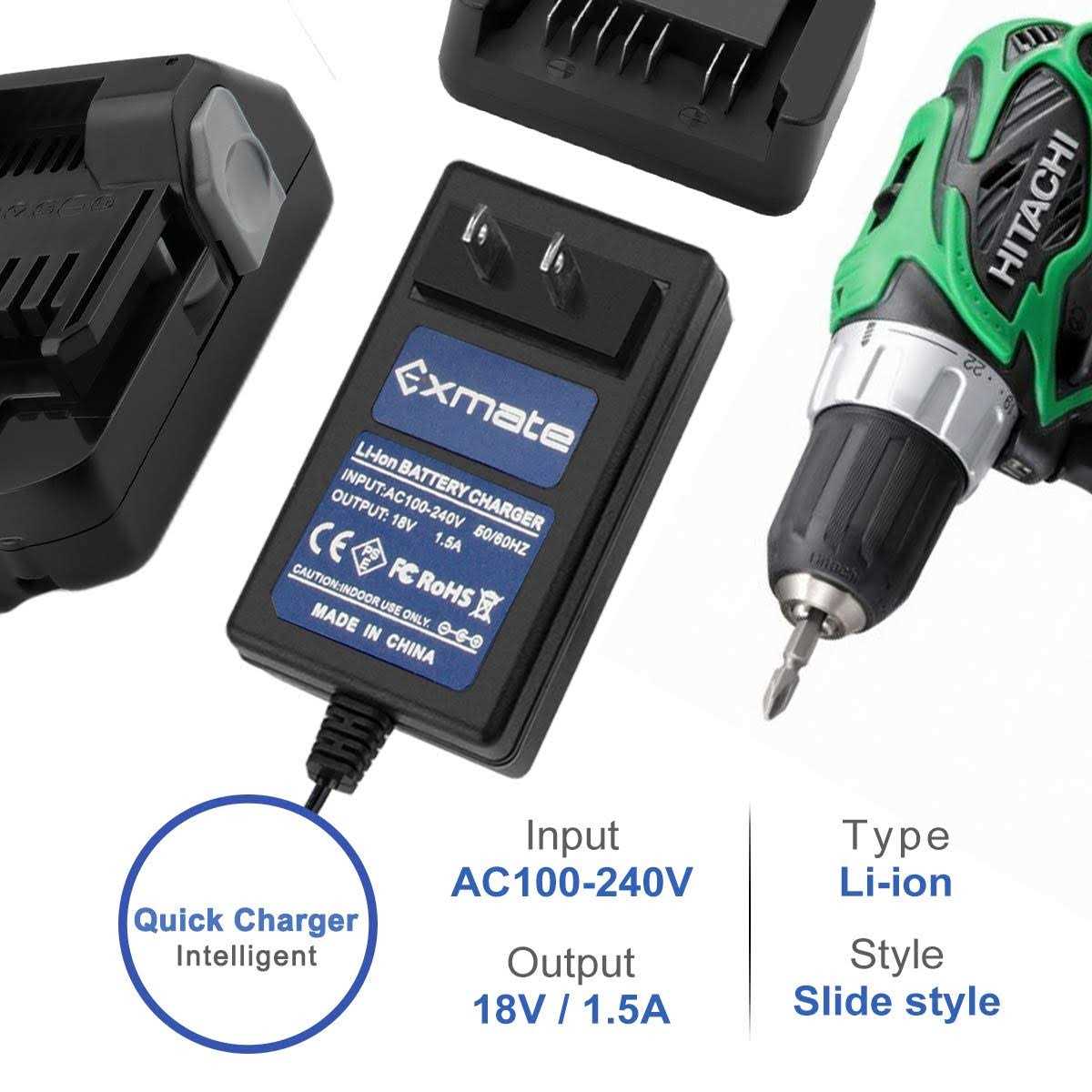 Exmate 18V Li-ion Battery Charger Compatible with Hitachi 339782 BSL1830C BSL1815S BSL1815X BSL1830 330139 330557 18V Li-ion Battery