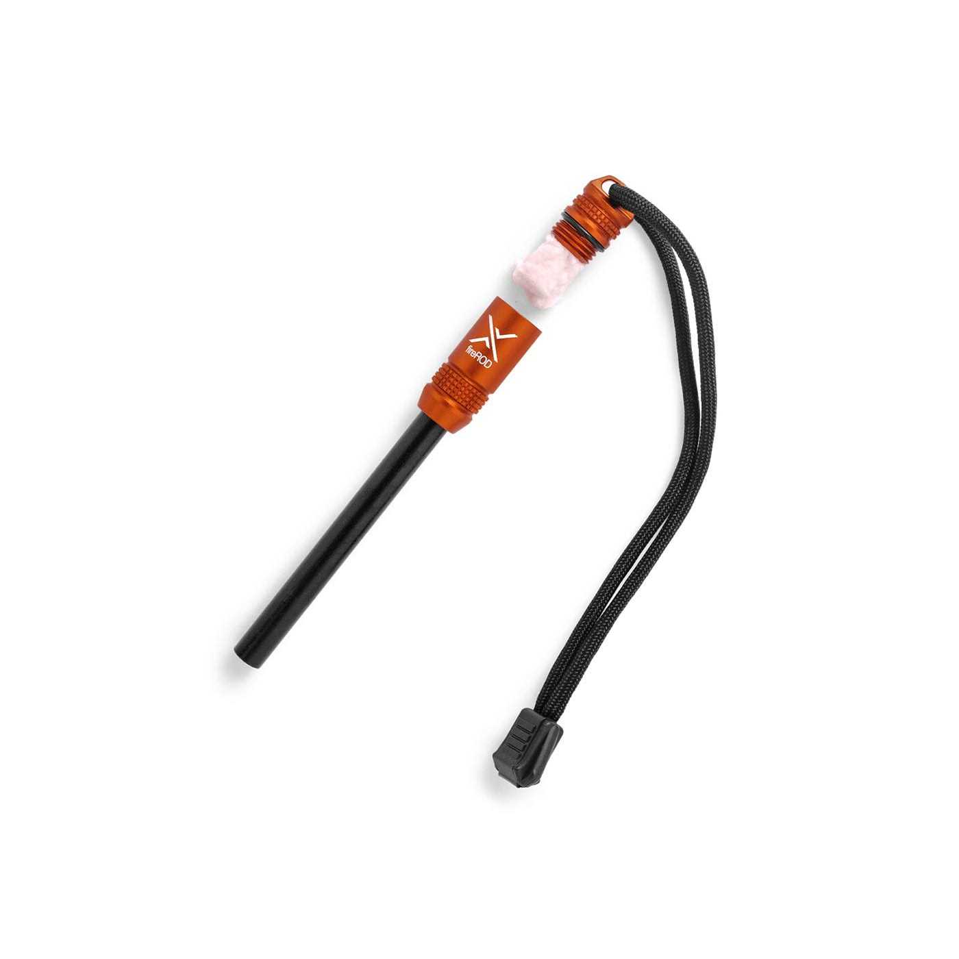 The perfect fire tool for carry in a knife sheath ferro-loop or just in a pack. The tool is simple in design and offers plenty of storage for tinder or water purification tablets. The ferrocerium rod is replaceable so you won’t need to discard this tool when the rod is worn out. Use a sharp 90 degree edge to strike such as the spine of a knife.