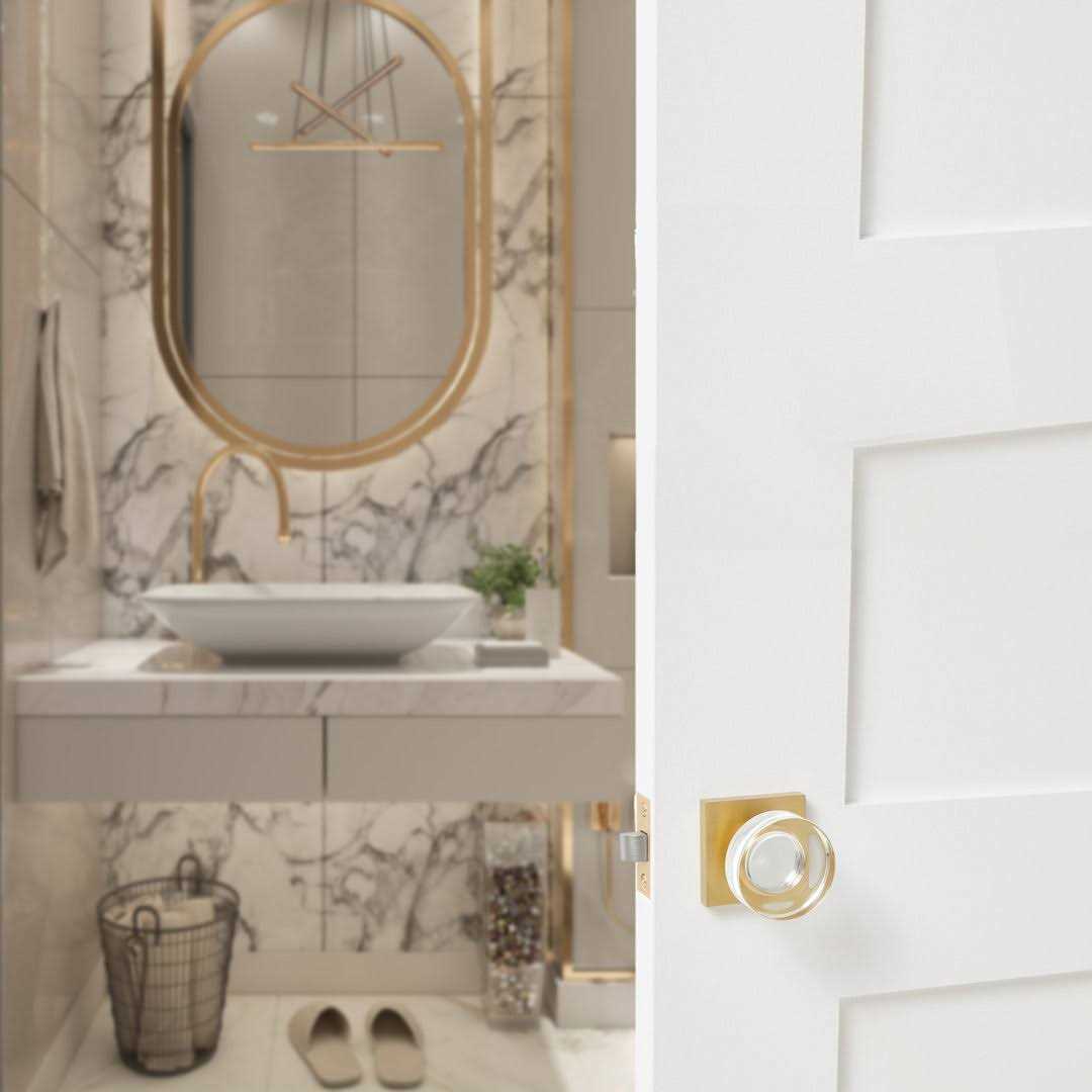 This crystal style knob is paired beautifully with our solid brass handle and square rose/backplate. This design will accentuate any home from modern to farmhouse and even to your cottage. The knob has smooth edges for an elegant feel and finished in satin brass. Explore Hardware. Color: Gold.