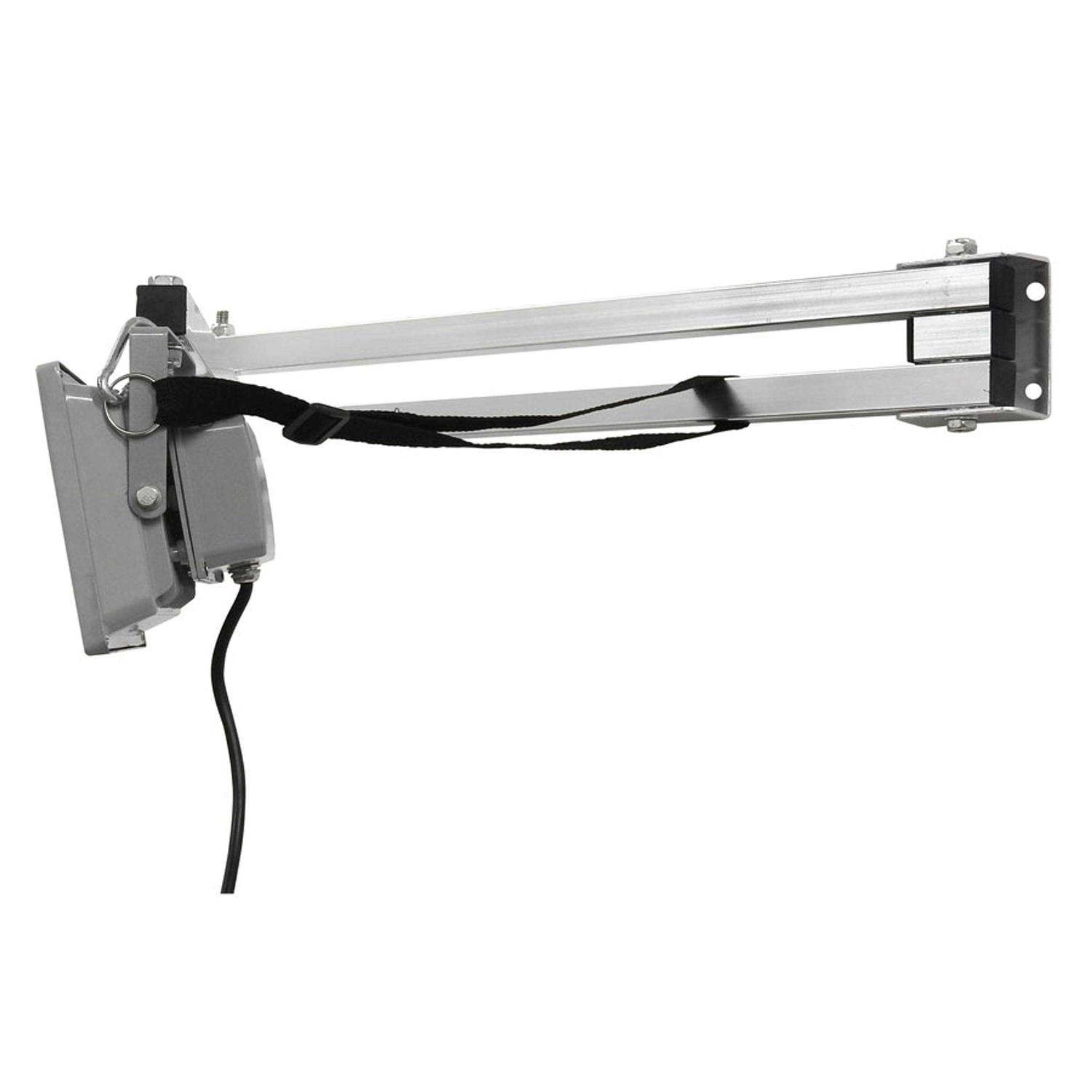 The Extreme Max Adjustable Aluminum Swing Arm LED Work Light is designed for installation in workshops and race trailers, providing a brilliant lighting to nearly any style workplace. The swing arm design offers precise light direction that is easier to use than a trouble light and more adjustable than a static overhead work light. The light is powered by any standard 120V outlet and includes a 68″ power cord. The light also includes a leash to secure the light during travel.