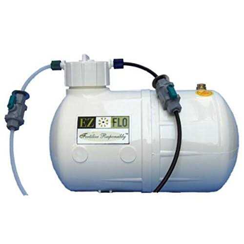 Mainline Fertigation Systems Got an area you need to fertigate that’s 500 square feet to 1 acre in size? EZ-FLO’s Main Line systems attach to your irrigation system so fertigation is automatic and convenient. * Feeds All Zones * High Pressure Rated * More Capacity * Total Landscape Care These “set and forget systems are built to last without maintenance. They’re made big so you’ll only need to refill them once in a blue moon. They’re engineered to be strong so you won’t have to worry about cracks or leaks from static water pressure. Once you fill a Main Line model up with liquid or water soluble fertilizer all you need to do is set the ratio of fertilizer to water and that’s it! No Pressure Loss Experience uninterrupted irrigation performance as EZ-FLO’s Main-Line system operates without causing any pressure loss. Dynamic Suspension Rely on EZ-FLO’s patented dynamic suspension technology which guarantees a consistent nutrient mixture for even and effective fertilization. Scalability Suitable for various landscape sizes from 500 square feet to 1 acre ensuring efficient fertigation as needs change. Seamless Integration Easily connect to existing hose sprinkler or irrigation systems for a simplified setup and operation. Easy installation The EZ-FLO system is designed for simple installation even for those with limited experience in irrigation systems. Broad compatibility EZ-FLO is designed to work with various watering systems including hoses sprinklers and drip irrigation systems ensuring seamless integration into your existing setup Strong ROI Agricultural producers will benefit from the increased crop yields reduced fertilizer use and efficient resource management provided by the EZ-FLO system ensuring a positive return on investment. Reliable and durable The EZ-FLO system is built to withstand demanding conditions of large-scale agricultural production ensuring long-lasting and consistent performance [Ez-Flo Main-Line unit in a field] ————————- Fertigation With EZ-Flo Traditional fertilization is a water and labor-intensive process. The EZ-FLO patented process of delivering solutions to your landscape eliminates the need for additional labor and water. By adding these products to the irrigation system typically in combination you are able to solve a wide variety of landscape issues all at once with minimal labor required. With the EZ-FLO system you can treat a six-acre park or a home landscape in minutes versus hours. EZ-FLO can deliver a solution within minutes or weeks from the same system without the need for complicated adjustments or programming or premixing. The EZ-FLO Dynamic Suspension process stratifies the solution into layers preventing dilution. Layering technology allows products to be consistently applied over weeks to take full advantage of the beneficial micro-dosing approach. ————————- Specifications for Hose Bib Fertigation Systems 1.5 GALLON (EZ001-CX) 2.5 GALLON (EZ003-CX) 4.5 GALLON (EZ005-FX) 8.5 GALLON (EZ010-FX) FILL CAPACITY 1.5 Gal. / 10 lbs. 2.5 Gal. / 15 lbs. 4.5 Gal. / 30 lbs. 8.5 Gal. / 50 lbs. DIMENSIONS 8 x 13 x 11 8 x 21 x 11 10 x 28 x 13 12 x 27 x 14 COVERAGE 10000 sq. ft. 15000 sq. ft. 30000 sq. ft. 50000 sq. ft. FLOW RANGE 2.5 GPH – 300 GPH 2.5 GPH – 300 GPH 2.5 GPH – 300 GPH 2.5 GPH – 300 GPH PRESSURE RANGE 5 PSI – 80 PSI 5 PSI – 80 PSI 5 PSI – 80 PSI 5 PSI – 80 PSI