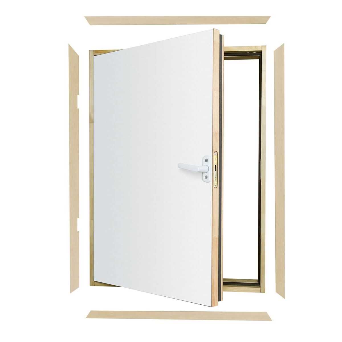DWF L-Shaped combination fire-resistant doors have a 45-minute fire rating – EN 1V3501-2) to protect against the spread of flame while providing access to unused space behind a wall. The white 6.6cm think sash has thermo insulation to provide an excellent barrier against heat loss (U= 0.64W/m2K*). The door can be installed in the right or left side. They are as standard equipped with wooden architrave lining in natural colour. Universal handle with lock. Rubber seal to ensure full airtightness. Architrave Lining, Technical Specification. Fire Resistance to EK1/EL2 = 45 Minutes. Heat Transmission Co-Efficient U Value = 0.64 W/m2k, Insulation Thickness 6cm. Achieves Class 4 EN12207. Passed fire resistance EN1V3501-2 to EL145.