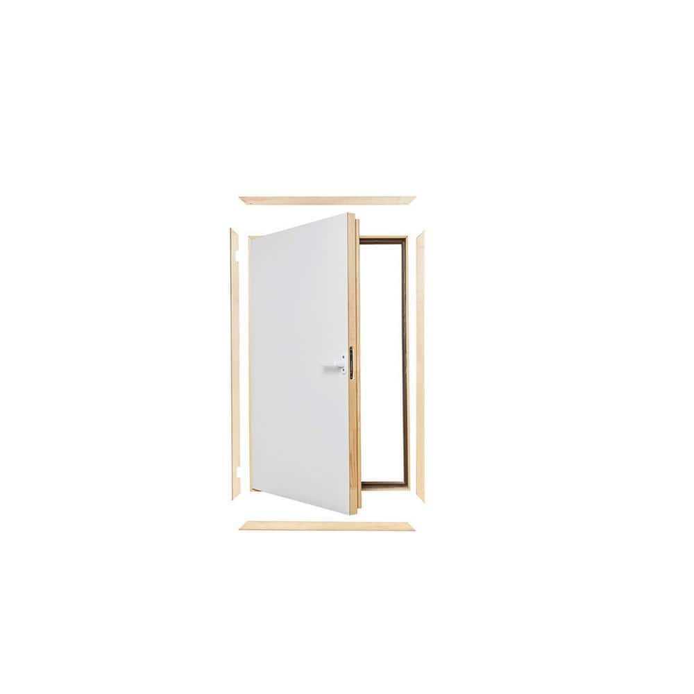 The DWT Highly Energy Efficient L-Shaped Doors are designed primarily for installation in L-shaped walls. They provide access to the room behind and at the same time constitute an excellent barrier against heat loss (heat transfer coefficient U = 0.6 W / m2K *) and guarantee high tightness. The door can be installed in the right or left side and as standard equipped with wooden architrave lining in natural colour. Universal handle with lock. Rubber seal to ensure full air tightness. 6.6cm thick sash, white on both sides. Architrave lining 3.5cm wide with heat transmission co-efficient U Value = 0.6 W/m2k, with insulation thickness 6cm.
