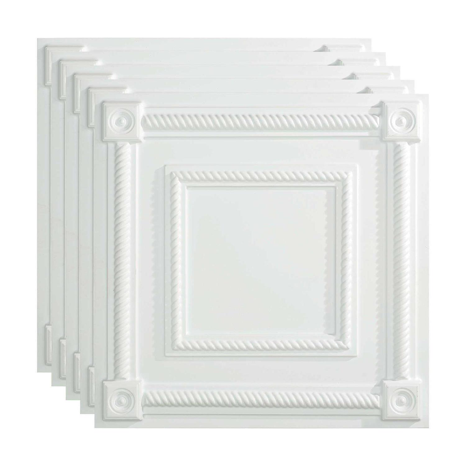 Fasade Coffer Decorative Vinyl 2ft x 2ft Lay in Ceiling Tile in Matte White (5 Pack)