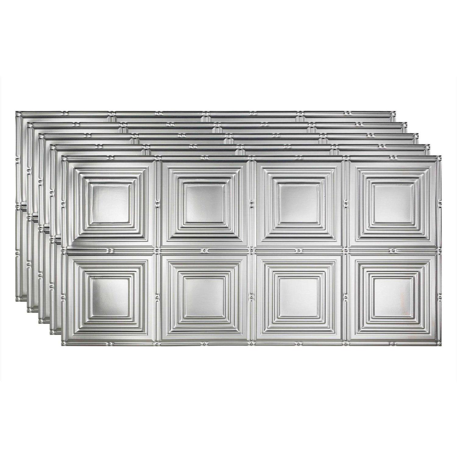 Fasade Portrait Decorative Vinyl 2ft x 4ft Glue Up Ceiling Tile in Brushed Aluminum (5 Pack)