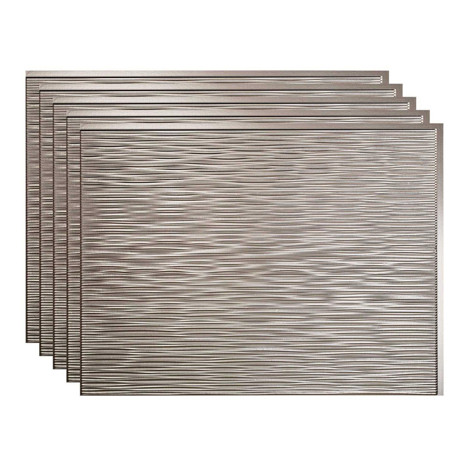 Fasade 18in x 24in Ripple Brushed Nickel Backsplash Panel (5 Pack)
