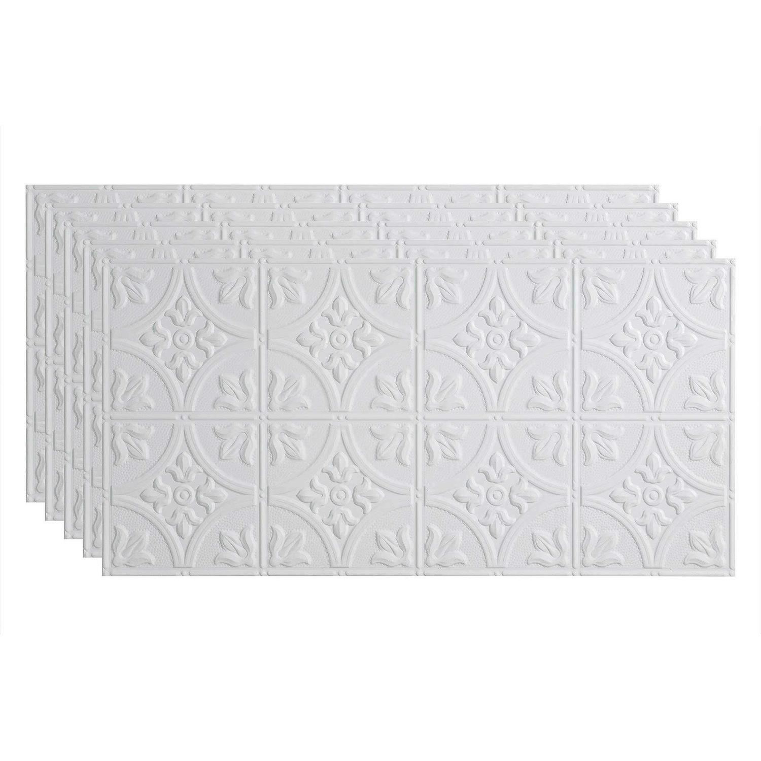 Fasade Traditional Pattern/Style #2 Decorative Vinyl 2ft x 4ft Glue Up Ceiling Tile in Matte White (5 Pack)