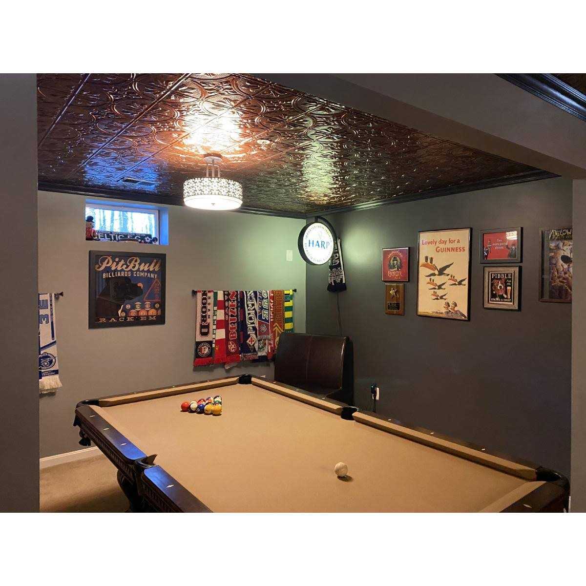 Fasade Glue-up decorative thermoplastic ceiling panels provides the classic look of Traditional tin ceilings for a fraction of the cost. Whether you are remodeling an entire room or simply accenting a small area, these ceiling panels create an instant designer look. Unlike Traditional tin panels that require decades to acquire an antique look, these ceiling panels have that turn of the century authenticity right out of the box. Fire Rating – Class A.