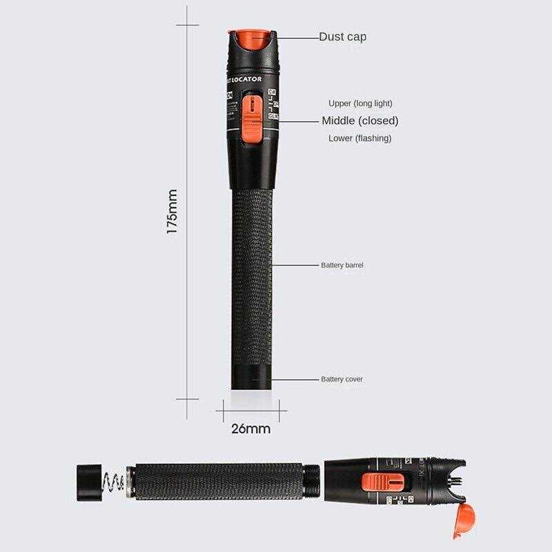 LONG OUTPUT DISTANCE: This 10mW visual fault locator output strong red light goes 10 kilometers far, high effective power circuits allows for stable power. METAL MATTE PAINT DESIGN: It is designed with a stainless steel head and aluminum body to prevent crash and dust, and the case ground design prevents ESD damage efficiently. WIDELY USED: The 2.5mm universal connector of the detector is compatibly designed for ST, SC, FC, LC interferes both in a circle and square shape of different fiber optic cables. Test for both single-mode and multi-mode cables. Shell Material: Aluminum Pen-type Output Optical Power: more than 10mW Output Distance: 10KM Wavelength: 650nm 20nm Use Temperature: 0-60 Storage Stability: -20-70 Operating Model: Both CW and Pulse available Applicable interface: ST/SC/FC/LC (LC interface requires additional adapter) Power: 2 AA batteries (included)