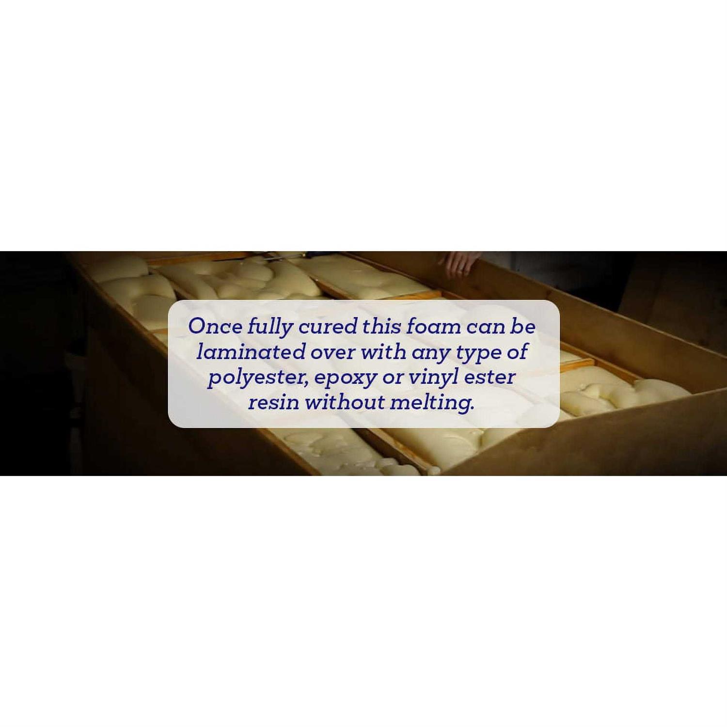 - Once fully cured this foam can be laminated over with any type of polyester, epoxy or vinyl ester resin without melting.