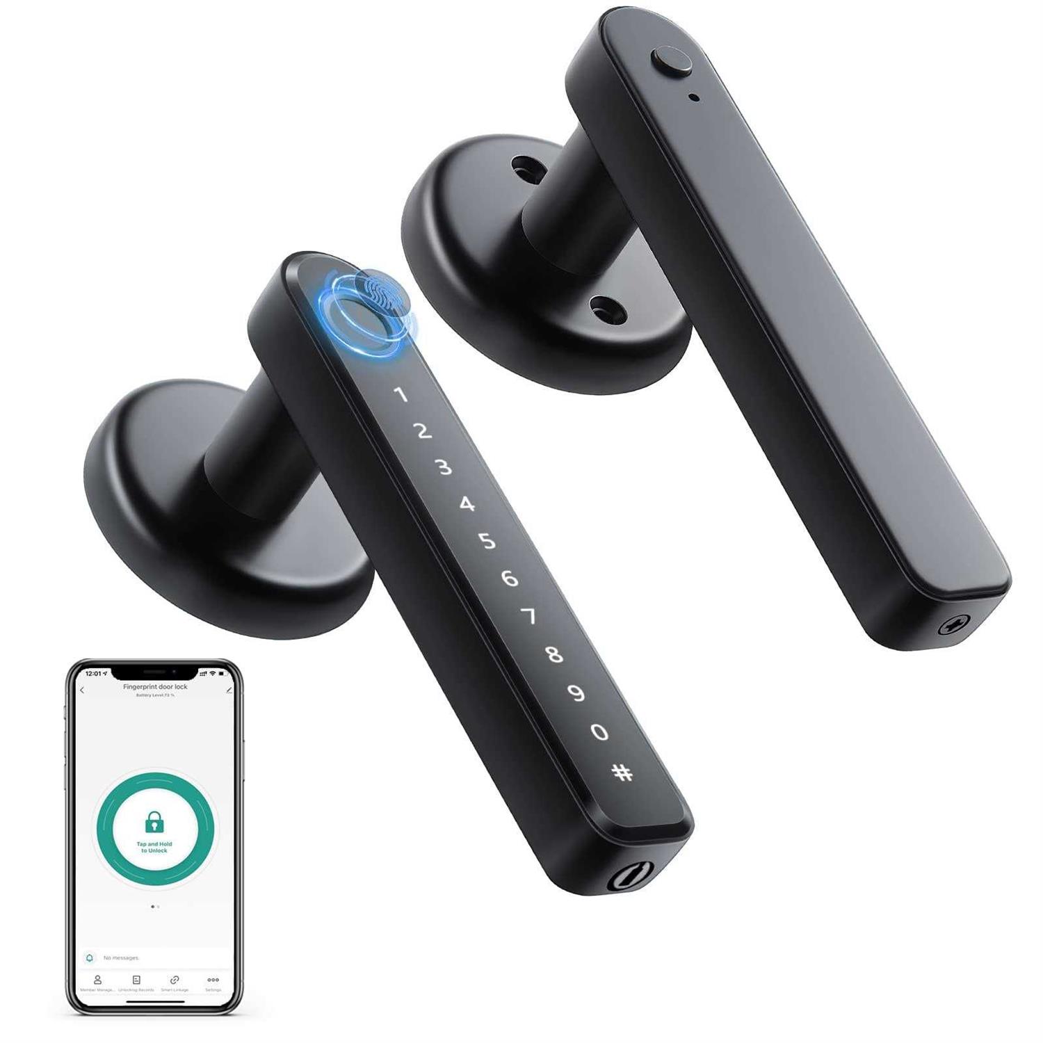 Fingerprint Door Lock Millionhome Door Lock with App/Code/Backup Key/Fingerprint Door Knob Keyless Entry Door Lock with Handle for Home Hotel Office