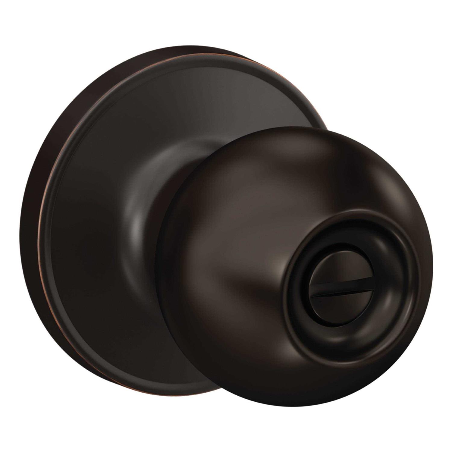 The First Secure by Schlage Rigsby Aged Bronze Bed/Bath Privacy Knob offers durability and convenience from a reputable name in door hardware at an exceptional value. It is ideal for bedroom and bathroom doors where privacy is needed. Plus, it is backed by our limited lifetime mechanical guarantee.