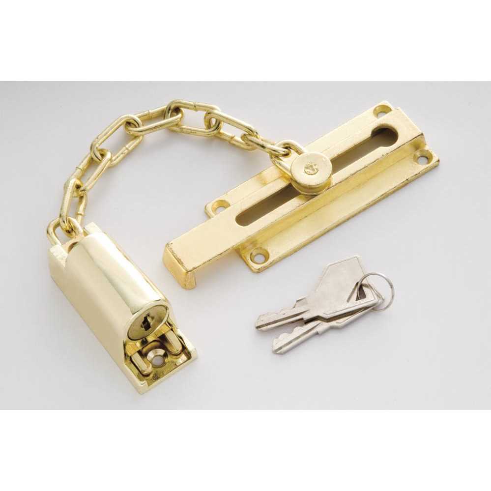 Keyed Entry Chain Door Guard with 2 inch Opening Feature Secure yourself and your family with this chain guard. This keyed entry guard can be unlocked from the inside or outside with the 2 keys included. The chain can be used to open the door up to 2 inch for viewing or ventilation while keeping the area secure. Features: Can be unlocked with key from inside or outside Bolt slides into keyed mechanism to lock Secures door while allowing 2 inch opening for viewing or ventilation First Watch Security branded products are manufactured to provide quality which you can count on. Grant yourself peace of mind by securing your home and belongings with First Watch Security.