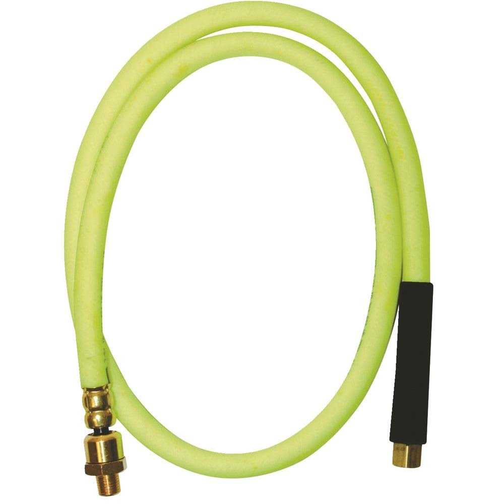Features. Increases longevity of the main hose. Reduces user fatigue by eliminating weight of couplersplug. Ball swivel increases mobility in tight workspaces. Improve air tool ergonomics. Superior all-weather flexibility. 300 psi maximum working pressure. Excellent abrasion resistance. Reinforced bend resistance. 14in MNPT Ball Swivel. Flexzilla Hi-Vis color makes hose more visible in the workplace 14in. Item Weight.46 lbs.