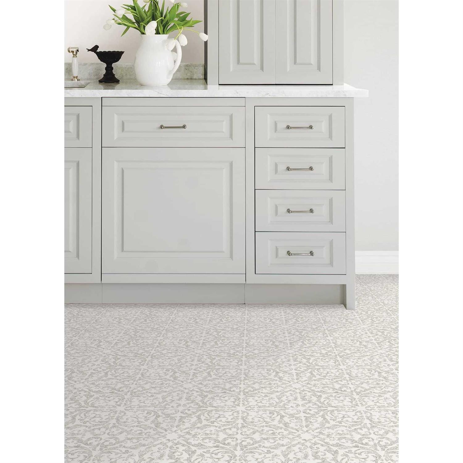 FloorPops This intricate medallion pattern brings the look of a freshly tiled floor. Featuring taupe hues, this peel and stick floor tile has a fresh and modern style. Estate Peel and Stick Floor Tiles contains 10 pieces on 10 sheets that measure 12 x 12 inches. This product measures 60in x 24in x 0.06in when assembled.