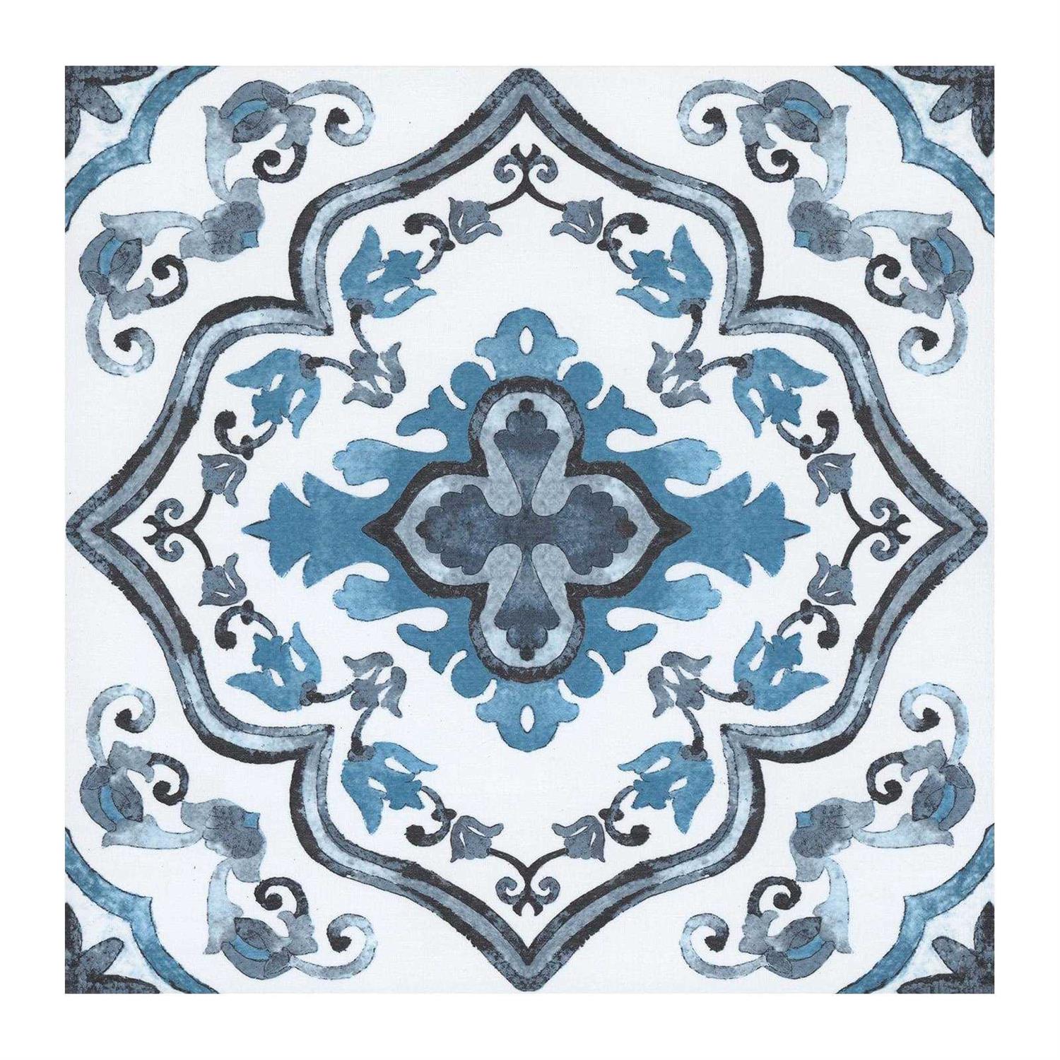 - Moroccan inspired blue peel and stick floor tiles