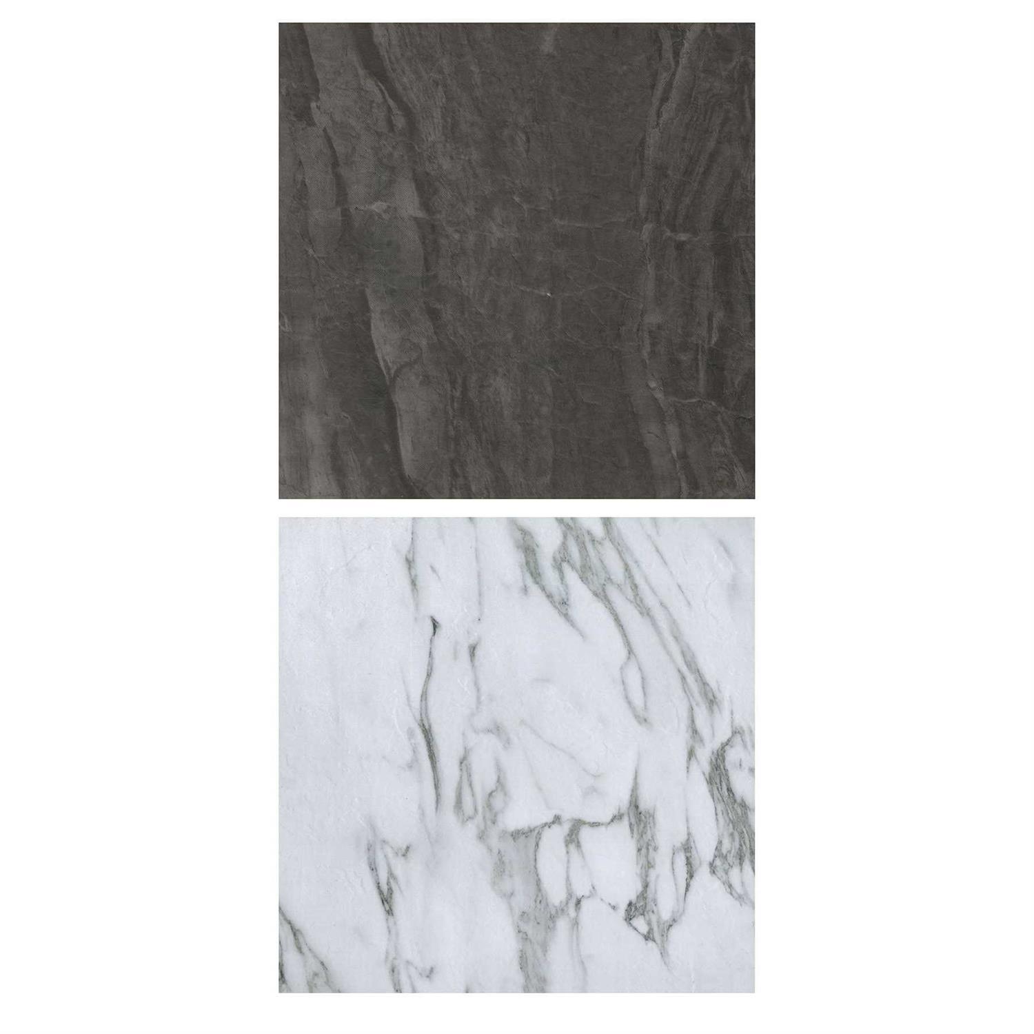 Black and white marble peel and stick floor tiles create the perfect checkerboard opportunity. Peel and stick to apply. Easy installation – no grout or special tools required. Water resistant and washable. Virgin Vinyl material with a textured low lustre finish and permanent adhesive makes tiles durable. This bundle pack contains 20 tiles total. Each tile measures 12 x 12 inches.