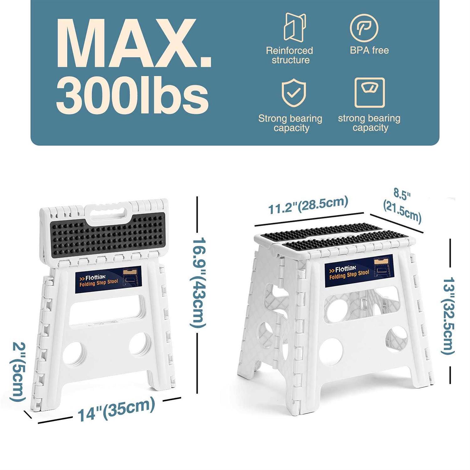 Flottian 13 Folding Step Stool for Adults and Kids Holds Up to 300 lbs,Non-Slip Folding Stools with Handle