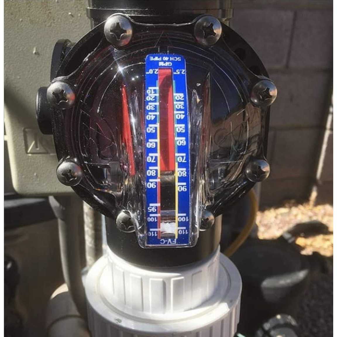 The H2flow FVC FlowVis Flow Meter, for 2″ x 2.5″ PVC is an advanced, affordable, and reliable precision flow meter designed specifically for pools, spas, fountains, and water features. This product is the Complete FlowVis unit with GPM scale for 2-inch and 2.5-inch applications. With a sleek design also comes variable installation configurations. It can be installed right next to other plumbing fittings such as elbows, tees, etc. with little or no degradation in performance or with no effect on accuracy and it can be installed in any position. This unit is a combination flow meter and check valve that provides you with the flow rate of your system. The FloVis reads the flow in GPM’s and includes scales for key velocity points. By knowing your GPM you can dial in your swimming pool pump and allows you to maximize energy savings by slowing a variable speed pool pump to its lowest required speed for filter circulation. The 1.5-inch and 2-inch refer to the difference in the actual flow meter inside based on the size of pipe it is being installed on. You can plumb 2-inch inside or 2.5-inch outside on both the part numbers. The only way to plumb 1.5-inch pipe to them is to use a 2×1.5-inch reducer inside the body on each side.