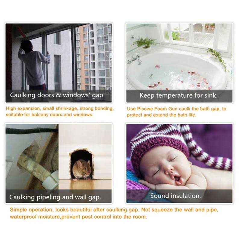 High Quality: Made of aluminum material, solid and durable, lightweight and compact. Picowe Foaming Gun has CE certification. Work Stable: Corrosion and wear resistant. High expansion, small shrinkage, strong bonding,suitable for balcony doors and windows. Creative Design: Ergonomic design means it’s comfortable to use for long periods of time. No post-dispensing foam drip. Spring trigger allows you to accurately control flow, less foam waste. Widely Use: Ideal for filling, sealing and insulating small gaps. No squeeze the wall and pipe, waterproof. Very suitable for balcony doors ,windows ,bathtub ,cabinet etc. Size: Picowe Foam Gun length:169mm(4.95”). Package includes: 1*Picowe Foaming Gun, 2*Cone sleeve, 1*plastic pipe,1* User manual(Please clean the gun after you each use) How to use the Small Polyurethane Foam Gun? /b br br 1. Taking a polyurethane foam gun, cleaning with polyurethane detergent to ensure unimpeded. br 2. Taking a bottle of vesicant, holding the middle of the tank body by hand, shaking the can body along the horizontal direction for at least 20 times to ensure that the tank pre-polymer fully mixed. br 3. Removing the detergent on the foaming gun, taking off the cover on the threaded valve of the vesicant, screwing the vesicant tank to the foam gun interface along the thread br 4. Gripping the foaming gun to ensure that the vesicant tank is on the top and the foam gun is under the tank, and then openning flow control valve of the rear of the foaming gun. br 5. The tip is aimed at the bottom or inside of the part to be filled.It will start the construction when gently pull the trigger.It can be adjust to the appropriate flow through the flow control valve behind the foam gun. br 6. After a tank of spray, if you want to fill, you can immediately remove the empty cans, according to the step 3 to re-install the vesicant to continue construction. br 7. When you finished,please remove the material in time and put on a special cleaning detergent to clean the foam gun to prevent the residual material curing plug foam gun. br br Specifications /b br br Brand: /b Picowe br Material: /b Aluminum & Copper & Zinc Alloy br The maximum output pressure: /b 8 MPa br The maximum injection flow rate: /b 5 L/min br Spray width 3 mm br Color: /b Black br Weight: /b 420g Length: /b 32cm(12.60 inches) br Handle size: /b 9.5x5cm(3.74×1.97 inches) br br Package Included: /b br br 1 x Expanding Foam Spray Accessories br 2 x Conical Tube br br Note: i Please clean it with Polyurethane foaming gun cleaner after each use. /i /b br 1. Clean the exterior and gun tip br 2. Spritz the Basket Attachment br 3. Then replace the cleaner to flush the interior until foam gone.
