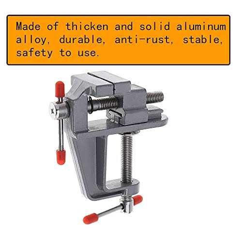 1. This mini table vise is made of aluminum alloy, strong and sturdy,a handy miniature Vise. 2. FOITECHY Mini Table Vise For Small Work, Crafts, Arts, Detailing, Woodworking, Workbench, Soldering, Garage, Hobbies, Finishing, Modeling, Tables, Flat, Angular, and Round Objects -By. 3. MUDUOBAN table Vise is ideal for any small woodworking job or project that you may be working on. Clamp down any wooden block for sanding, grinding, detail, drilling, carving, chiseling, and much more. 4.this vise is not only lightweight, but incredibly durable. Handheld use. It can be installed at the edge of all kinds of desktop, Maximum fixed thickness 1.2″(30mm), quick and easy disassembly;.,,Foitech
