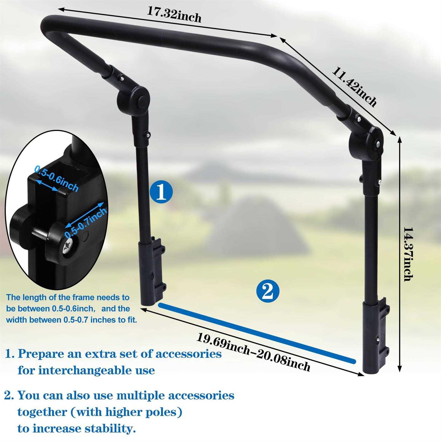 Note: Our stroller handles are only suitable for strollers with square tube frames, not round frames! ! ! HIGH QUALITY MATERIAL: Our wagon push handle is made of high-quality plastic-sprayed steel pipe, ensuring long-lasting durability and reliability. Plus, the sponge layer on the handle surface provides a comfortable grip. 220°ADJUSTABLE: With 8 angle adjustments of up to 220°, simply press the buttons on both sides of the handle to find your desired angle for maximum comfort. WIDELY APPLICATION: This wagon folding handlefor use with semi-folding vans and a variety of carts for camping, shopping, and gardening. Its multipurpose design makes it a useful tool for all your transportation needs. PACKAGE INCLUDED: Push handle*1+link accessories*2+screw*4+gasket*4+nut*4 (cart not included) p HIGH QUALITY MATERIAL: Our wagon push handle is made of high-quality plastic-sprayed steel pipe, ensuring long-lasting durability and reliability. Plus, the sponge layer on the handle surface provides a comfortable grip. – 220°ADJUSTABLE: With 8 angle adjustments of up to 220°, simply press the buttons on both sides of the handle to find your desired angle for maximum comfort. – WIDELY APPLICATION: This wagon folding handlefor use with semi-folding vans and a variety of carts for camping, shopping, and gardening. Its multipurpose design makes it a useful tool for all your transportation needs. – PACKAGE INCLUDED: Push handle*1+link accessories*2+screw*4+gasket*4+nut*4 (cart not included) /p