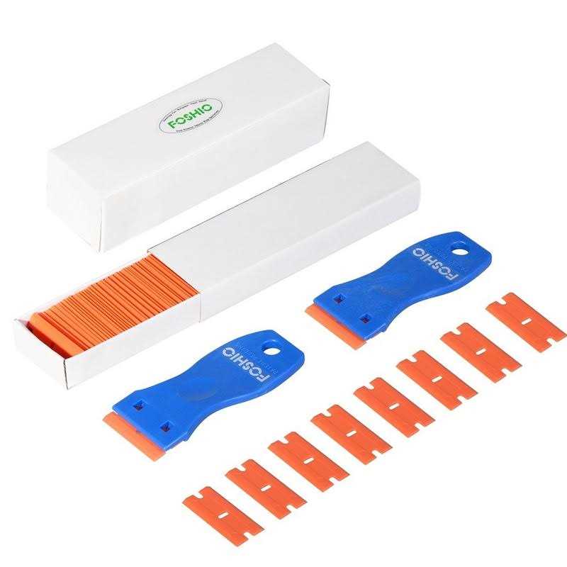Be the first to review “FOSHIO Plastic Razor Blade Scraper Include 2pcs Scraper Tool and 100PCS Blades for Gasket Remover, Labels Decal and Adhesive Remover for Windows and”
