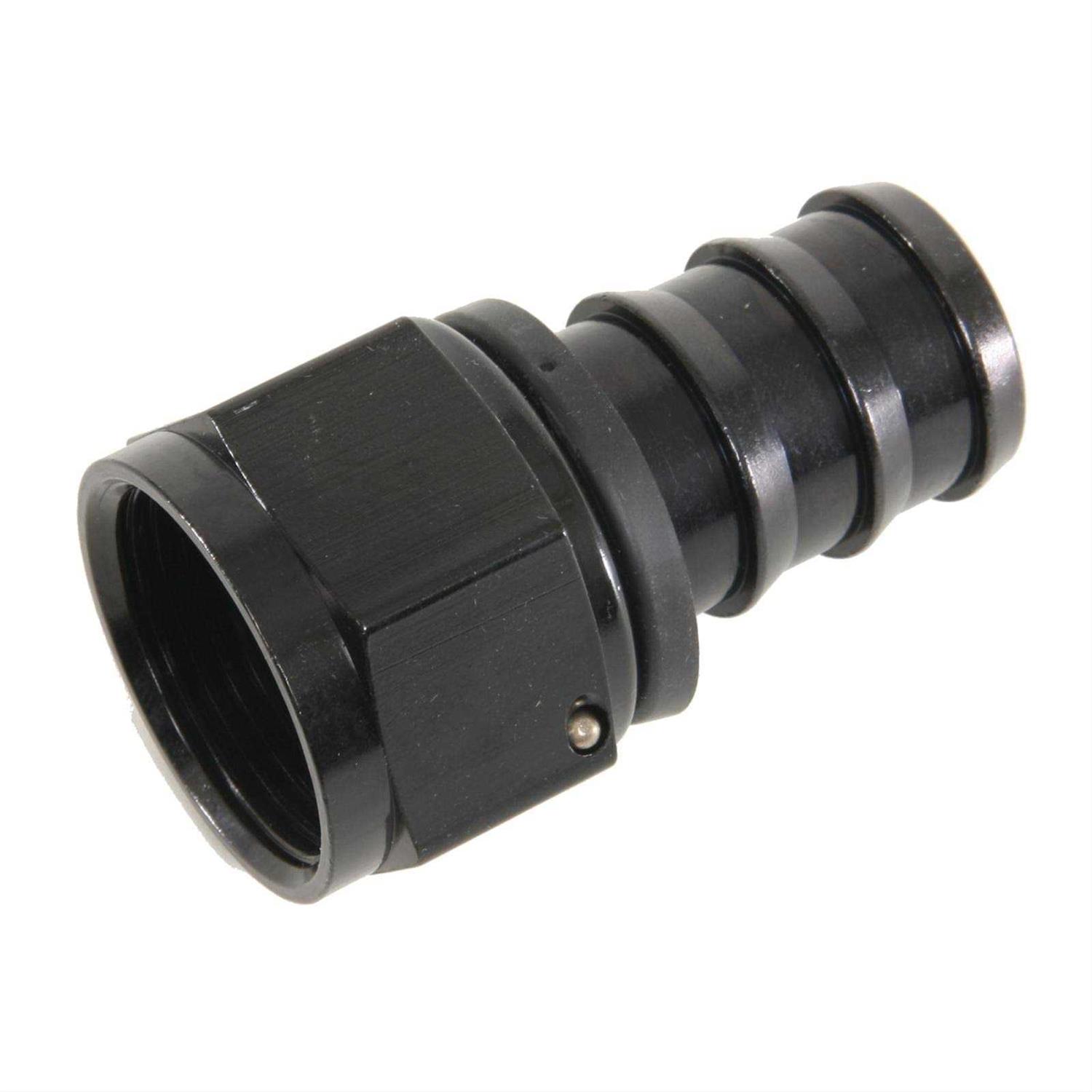 AN -16 Straight Push-Lok Hose End Black Top-quality fittings for your plumbing needs.These Fragola Performance Systems Series 8000 Push-Lite race hose ends feature a unique one-piece design that eliminates two brazed joints, minimizing potential leakage and improving flow and appearance. The correct AN specified J-thread is used for ease of installation and trouble-free re-use. A lightweight polymer cap provides positive stop for hose installation and covers the cut end of the hose. Hose barb dimensions are per SAE standards and they have a tapered nipple for easy alignment and installation. Their bright-dip anodizing provides a show-quality finish. Fragola Performance Systems Series 8000 Push-Lite hose ends are manufactured from aerospace-quality aluminum and machined to mil spec tolerances. Use with Series 8600 Parker Push-Lok Race Hose.