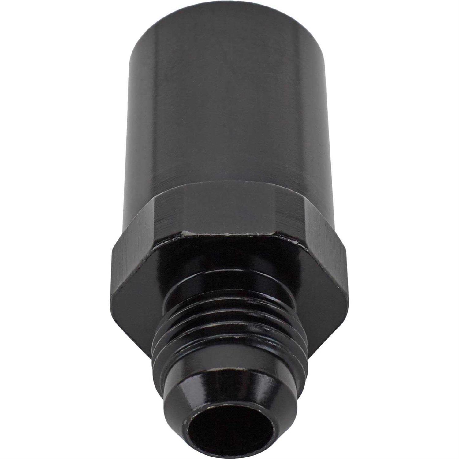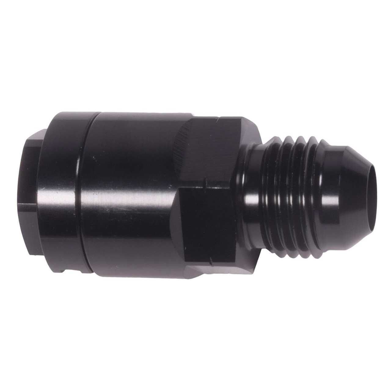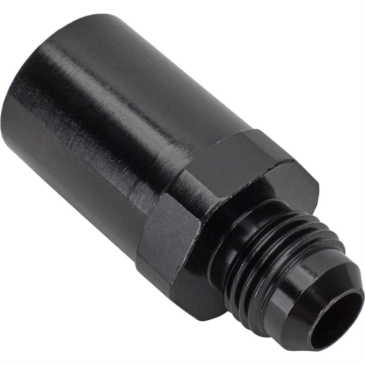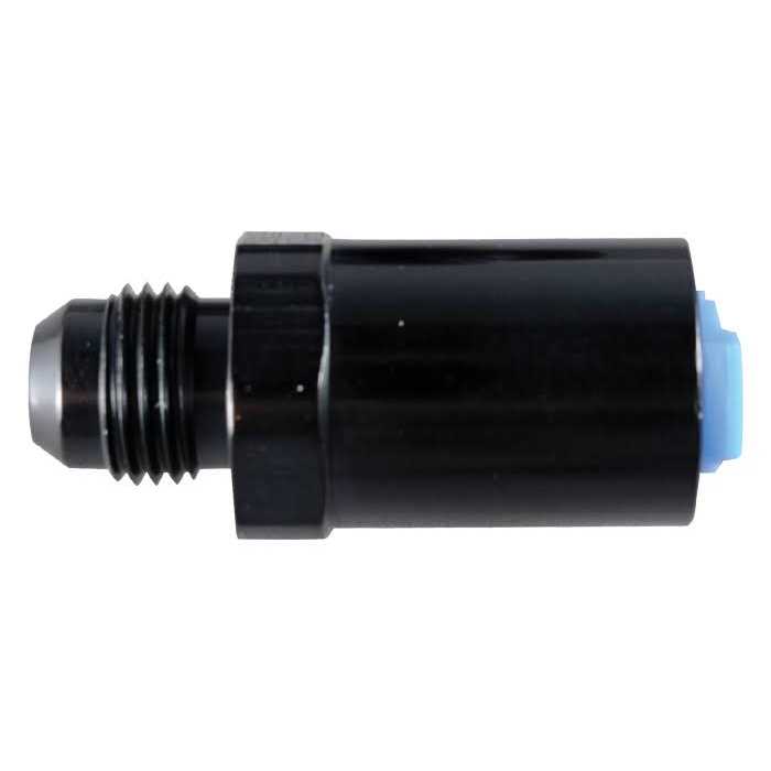 Fragola Performance Systems EFI adapter fittings are made from aerospace-quality black anodized aluminum. The anodized aluminum is made to be extremely strong and durable to allow the adapters to withstand years of use without needing to worry about leaks or total failure. These adapters have 1 -6 AN male threaded ends, and one 5/16 inch diameter female spring lock. These adapters are installed and uninstalled very easily using the hex style end which can be tightened or untightened with a normal wrench.