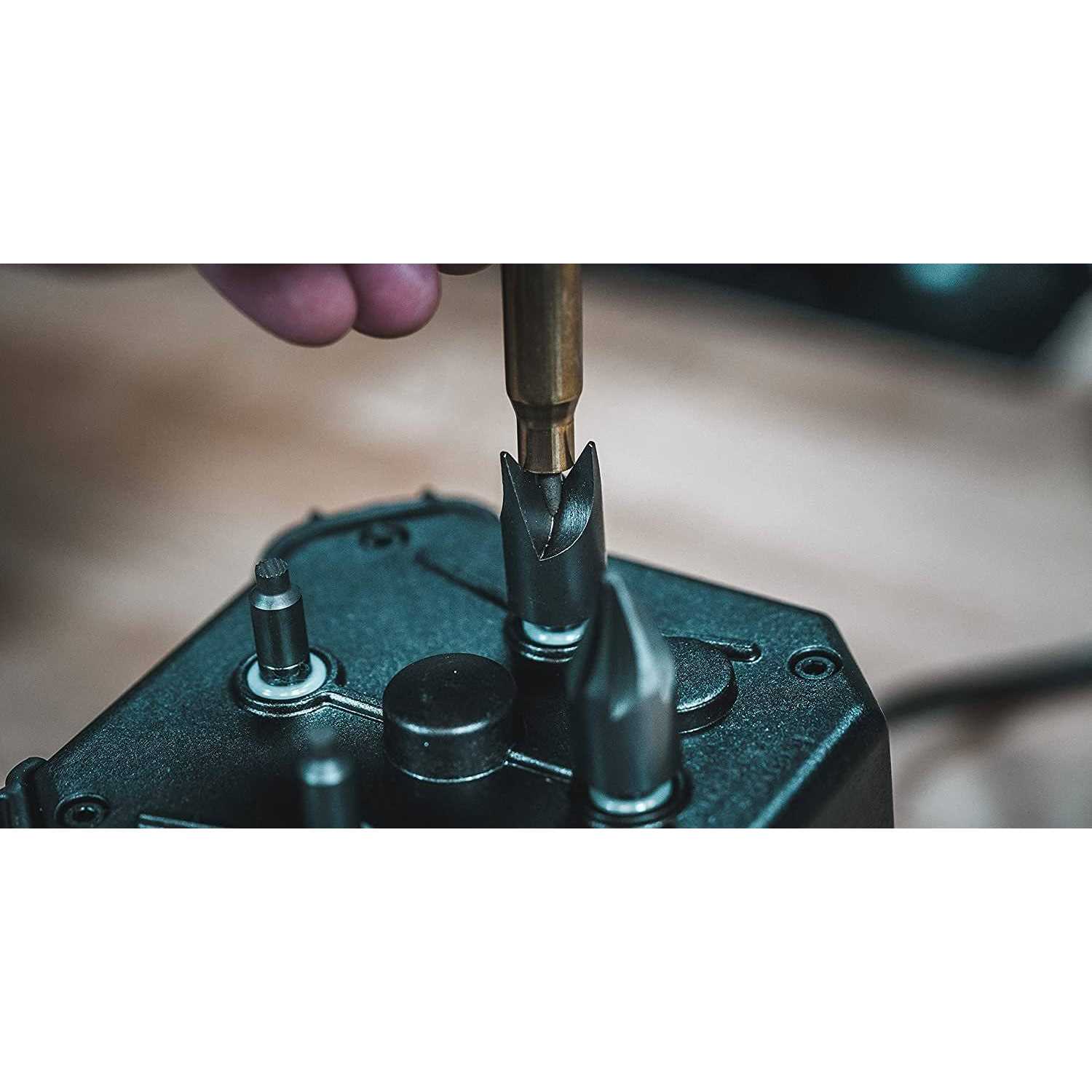 - VERSATILE: 8-32 threaded output shafts accept a wide variety of aftermarket case prep tools