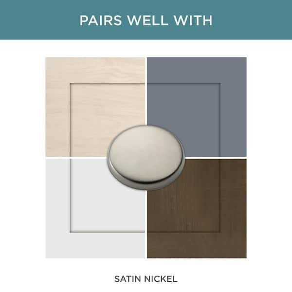 - Brushed nickel finish is the ideal complement to white or wood stained cabinetry.
