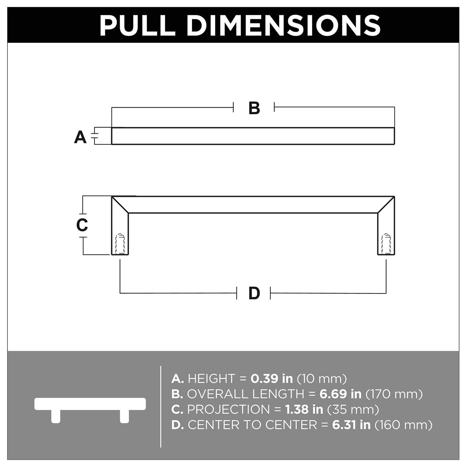 Simple is beautiful. Put the finishing touch on a room or entire home quickly with beautiful furniture handles that can go from the kitchen to the bedroom effortlessly. As a kitchen cabinet handle or a drawer pull, the Simple Modern Square black cabinet pull is the sophisticated cabinet hardware to complete your decor. This black pull features square edges with a 6-5/16 in. center-to-center, offering a comfortable grip on your cabinets and drawers. Made by Franklin Brass with over 70-years in cabinet hardware, this line of modern pulls gives you quality at a practical price. Design is.