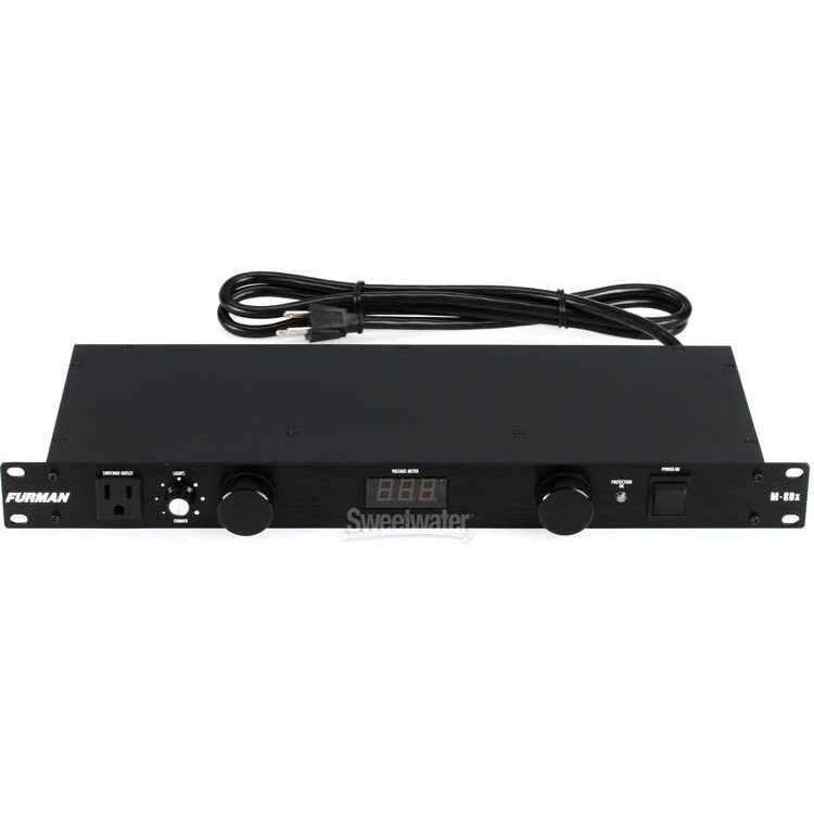 The Furman Merit Series M-8Dx Power Conditioner is the perfect low-cost AC power solution for any rackmount system. Its 8 switched AC outlets in the rear panel power and protect all your equipment from power surges with up to a 15-amp load. The M-8Dx protects your audio electronic equipment by combining high voltage varistor (Mov) surge and transient suppressors. The fast-acting supression circuit quickly responds and clamps transient voltages to safe levels. An Rfi/emi interference filter works to prevent noise from fluorescent lights, certain dimmers, radio transmitters, and similar sources of electronic pollution from contaminating the AC line and from there, leaking into sensitive audio, video, or computer circuits. Nrtl/tuv listed. Featuring 2 slide-out, swiveling light fixtures, The Furman M-8Dx Conditioner provides discreet illumination of your equipment on stages, in studios, and in other dark places. A dimmer knob lets you adjust the lamp brightness to just the right level. It also features a digital LED voltmeter to display incoming line voltages.