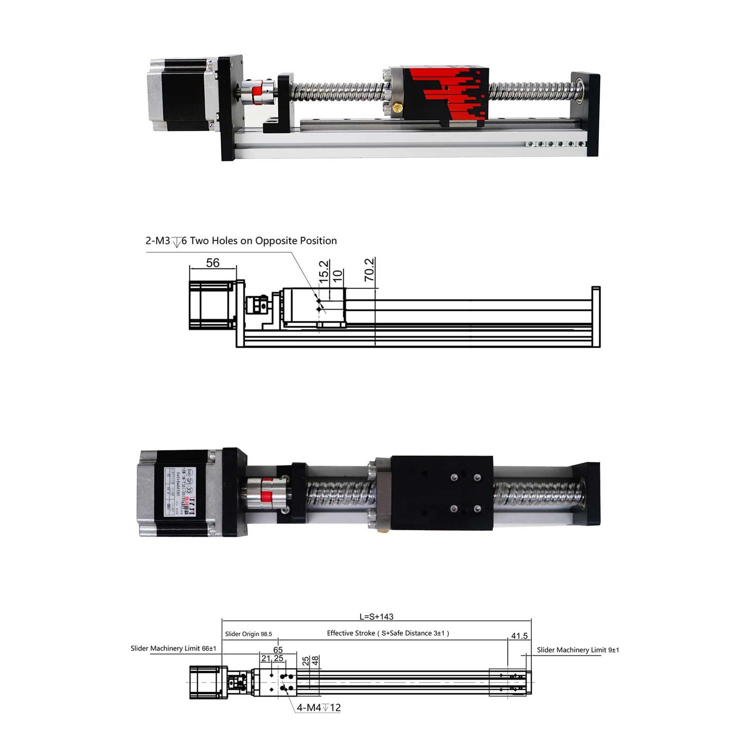 Special made nema 23 stepper motor with max speed up to 1200 rpm. Quality ball screw with accuracy up to ±0.03mm,also low noise when working.Oxided aluminum avoid rusting,extra support unit enhanced stability.