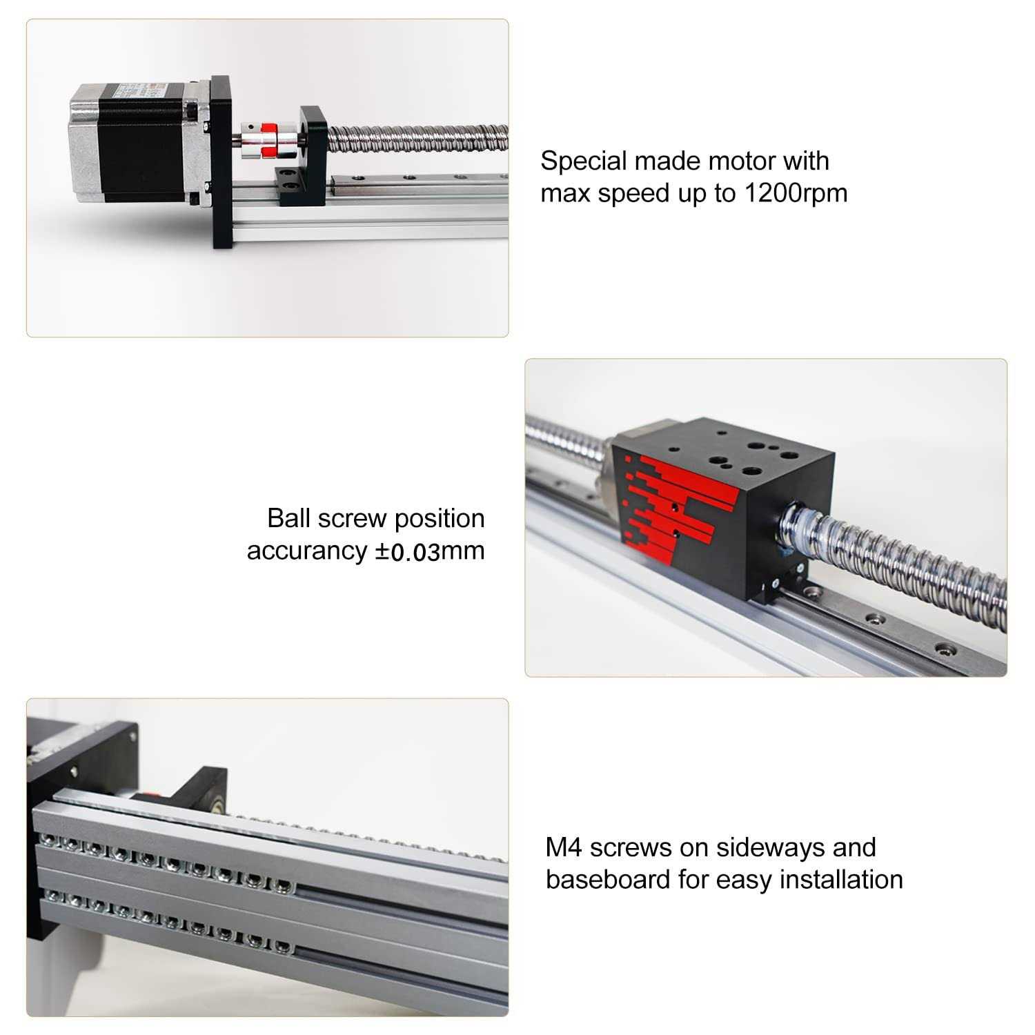 • Quality ball screw with accuracy up to ±0.03mm,also low noise when working.Oxided aluminum avoid rusting,extra support unit enhanced stability.