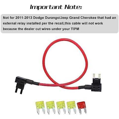 Fitment: Fit for Chrysler Town and Country 2008-2016 ; Fit for Jeep Grand Cherokee 2011-2013 ; Fit for Dodge Grand Caravan 2008-2016 ; Fit for Dodge Ram 1500, 2500, or 3500 2011-2012 ; Fit for Dodge Durango 2011-2013 ; Fit for Jeep Wrangler 2007-2016 ; Fit for Dodge Journey 2009-2010 ; Fit for Jeep Liberty 2007-2012 ; Fit for VW Routa 2011-2012 ; Fit for Dodge Nitro 2007-2011 . TIPM and Fuel Relay bypass cables are a simple way to test or bypass faulty fuel pump relay problems on many 2004 and newer for Dodge/for Jeep/for Chrysler vehicles. If your vehicle acts like it’s out of gas and/or your fuel pump continues pumping after turning the vehicle off (draining your battery), you likely have a faulty fuel pump relay. Our TIPM Fuel Pump Relay Bypass works with most 2004-2016 Dodge Jeep Chrysler and some VW models. Our 400 Strand Silicon Jacket wire allows these cables to route easily within the confines of your fuse box without having to worry about pinched wires or straining your fuse sockets. Our 14 AWG wire is upgraded to provide 20 amp capacity. Don’t settle for a hacked solution to save a dollar or two. Our cable bypasses the TIPM/fuel pump relay saving hundreds of dollars in repair or replacement! No skills are necessary if you can open your fuse box and you’ll have your vehicle running again in less than 5 minutes. Fitment: List of vehicles this has been tested on: Compatible with Chrysler : Town and Country 2008 2009 2010 2011 2012 2013 2014 2015 2016 Compatible with Jeep : Wrangler 2007 2008 2009 2010 2011 2012 2013 2014 2015 2016 Liberty 2007 2008 2009 2010 2011 2012 Grand Cherokee 2011 2012 2013 Compatible with Dodge : Grand Caravan 2008 2009 2010 2011 2012 2013 2014 2015 2016 Ram 1500 2500 3500 2011 2012 Durango 2011 2012 2013 Journey 2009 2010 Nitro 2007 2008 2009 2010 2011 Compatible with VW : Routan 2011 2012