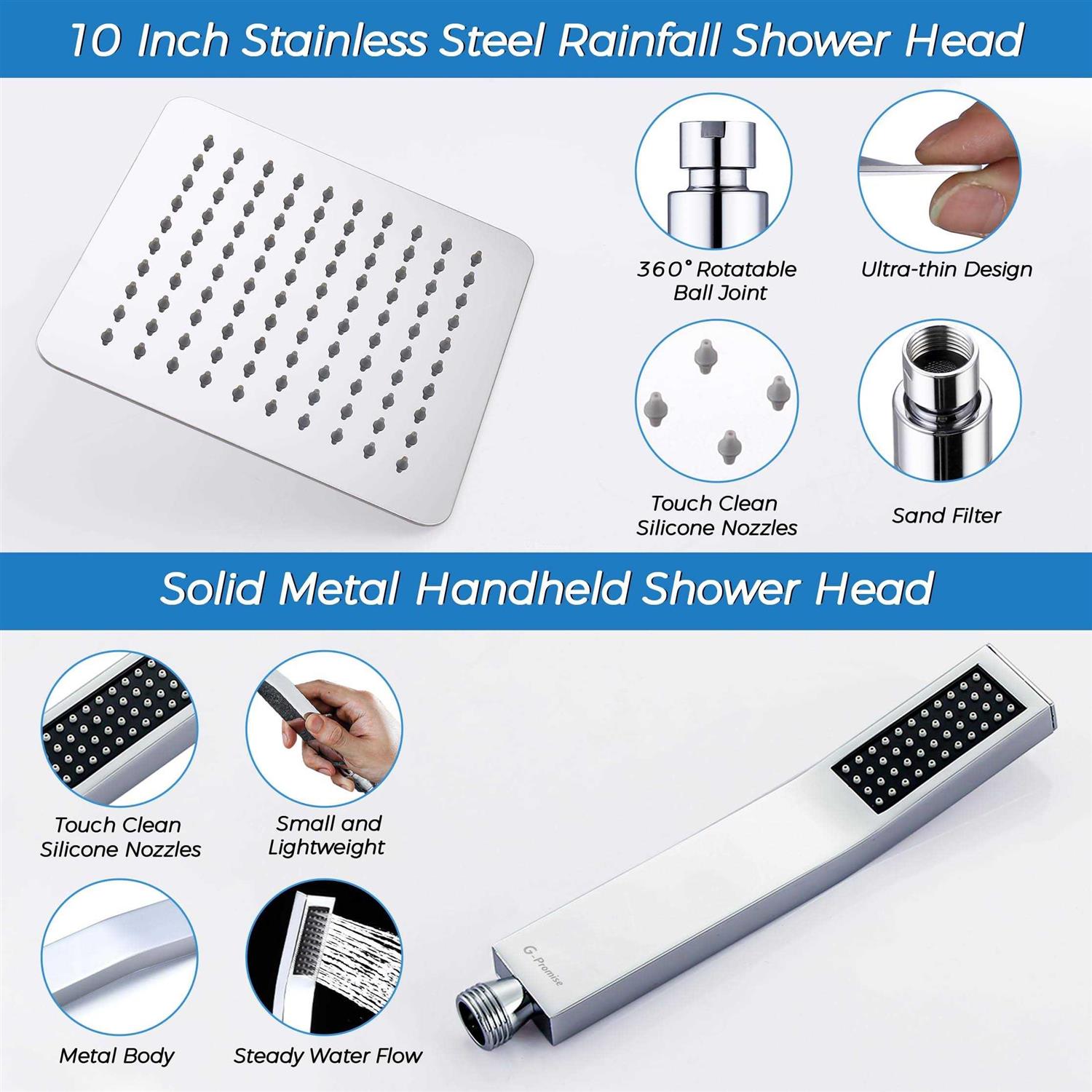 G-Promise All Metal 10 Inch Rainfall Shower Head With Handheld Spray Combo