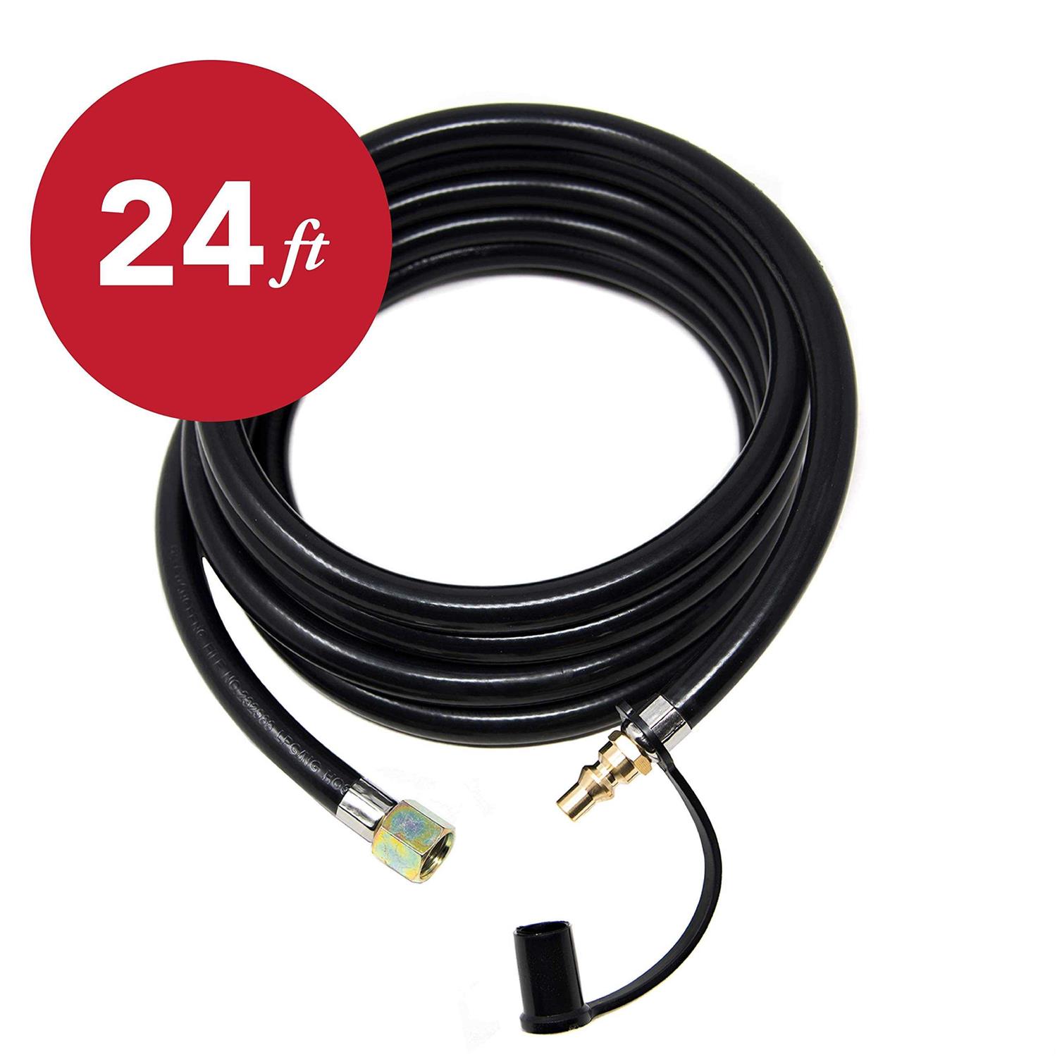 Connect your burner directly to your RV’s propane source without a separate tank. Gas One’s 2142-024 uses a quick connect fitting so that you can hook up your propane heater, burner, grill, or any other propane appliance straight to your RV. 24 ft rubber hose.