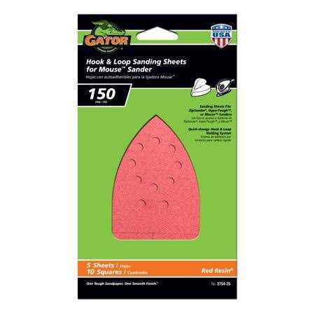 Gator 3754-25 120-Grit Hook & Loop Mouse Detail Sanding Sheets – 5 ct