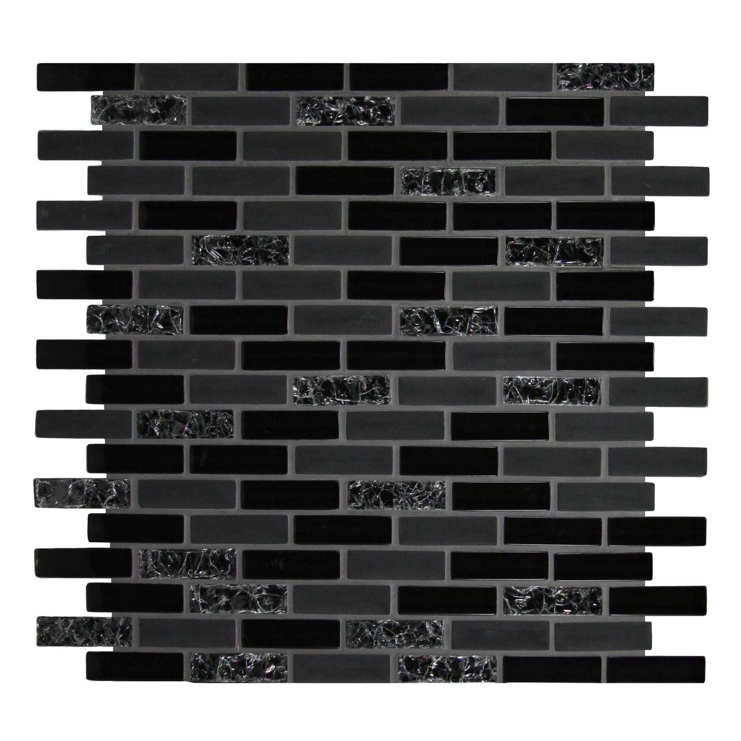 GBI Tile & Stone Inc. Gemstone Black 12-in x 12-in Glossy Glass Brick Subway Wall Tile | GL05X2BLGEM