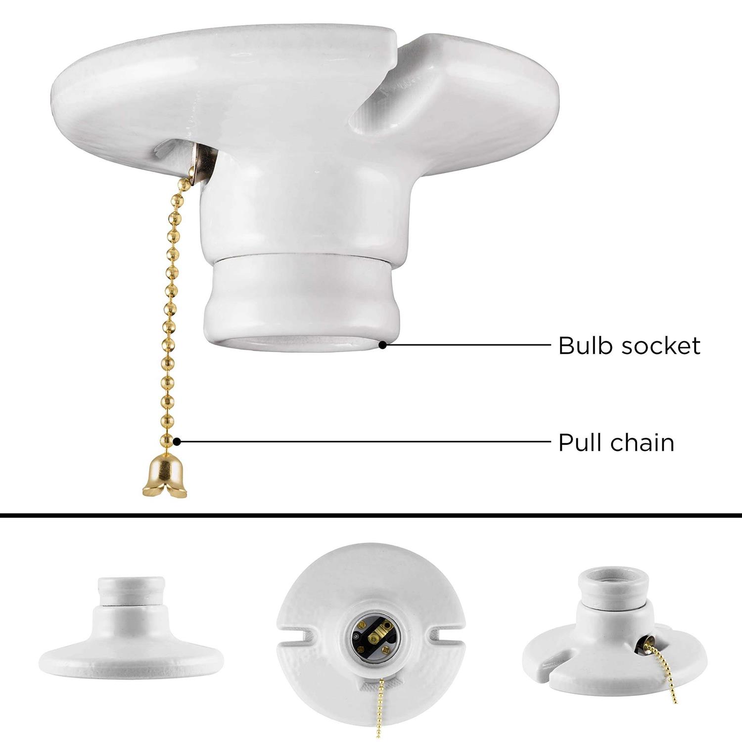 GE Medium Base Porcelain Lampholder with Pull Chain, 18303, White