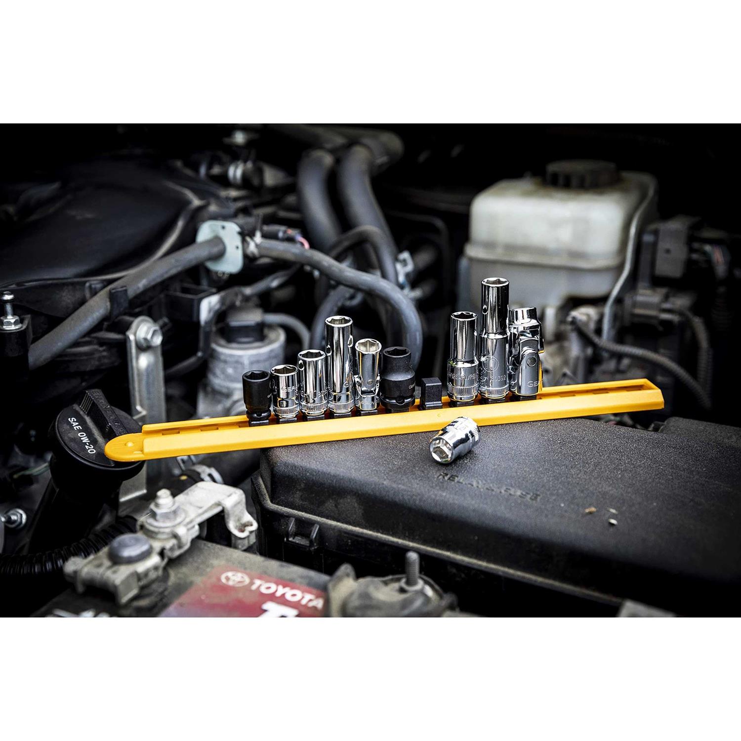 • Set includes flex, deep, mid-length, standard and magnetic sockets of the same size