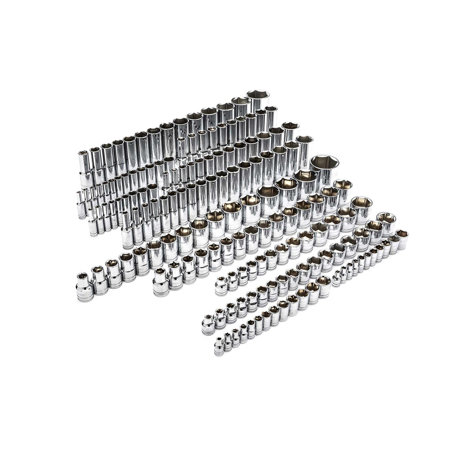 - Set includes 1/4inch, 3/8inch, & 1/2inch drive 6 point SAE & metric, standard & deep sockets