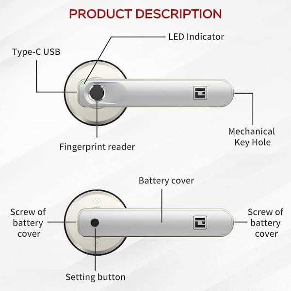 • Fingerprint door knob requires 4 AAA batteries (not included), according to our test, the batteries can last for 12-months
