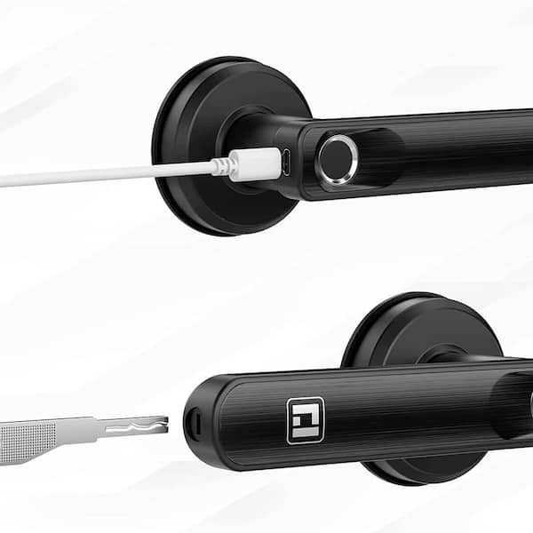 GeekSmart Aluminum Black Smart Keyless Entry Door Lock with Lever Featuring Fingerprint
