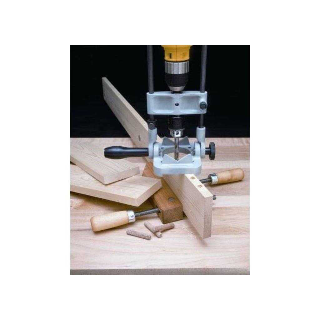 - V-Guides on the base automatically center dowels and other rounded stock